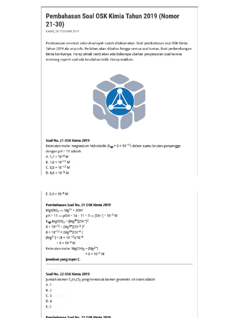 Pembahasan Osk Kimia 2018 - Pembahasan Soal Osk Kimia Tahun 2018 Urip Dot Info - Maybe you would like to learn more about one of these?