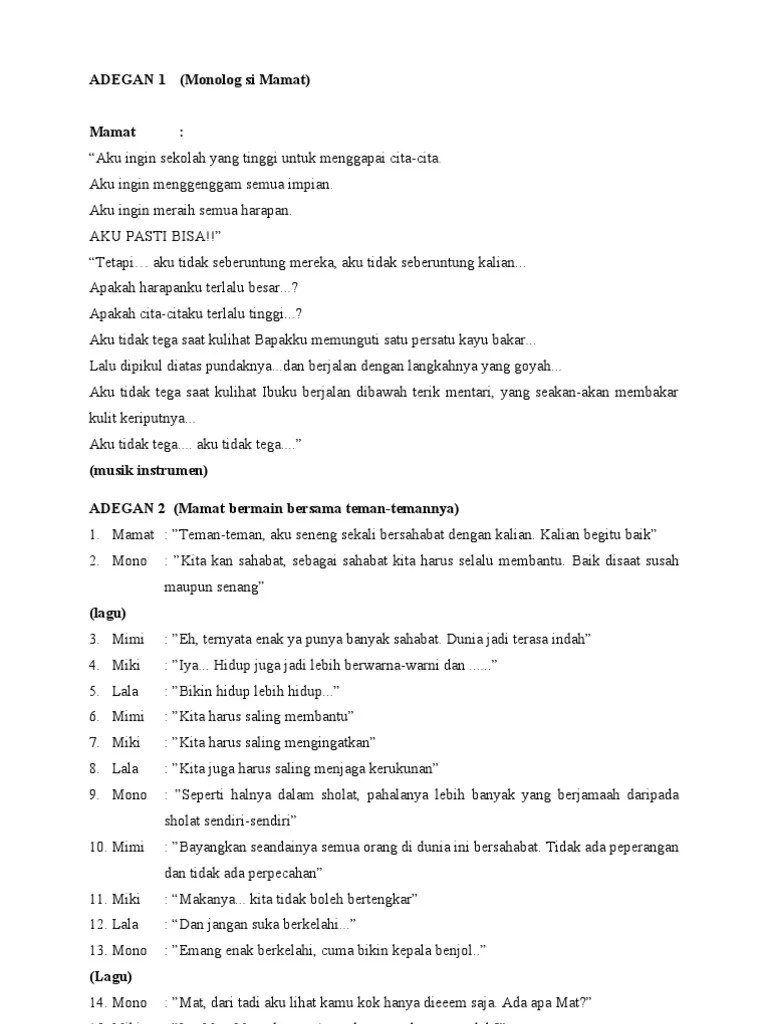 Ada ovj hingga film playing for keeps Mereka sebenarnya masih dalam masa sekolah menengah atas. Si tuli, si bisu dan si buta. Contoh naskah drama 2 orang. Kedua jenis konflik diatas dapat diwujudkan dengan bermacam peristiwa yang terjadi dalam suatu pementasan drama.