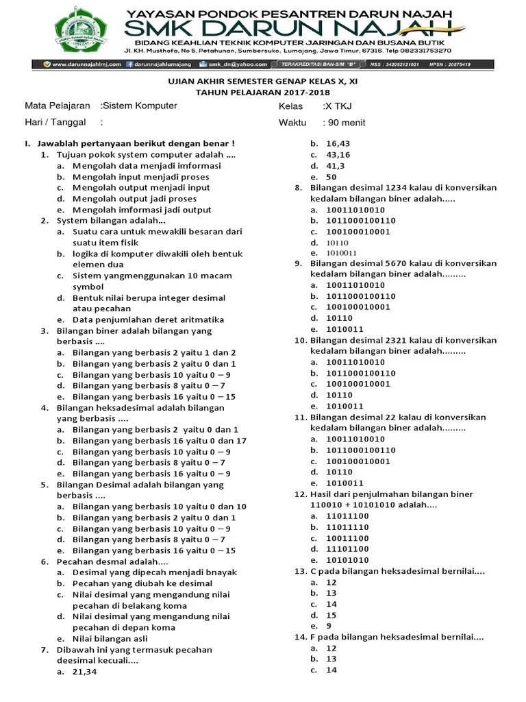 Pdf Sistem Komputer Kelas 10 Semester 1 Kurikulum 2013 Revisi 2017 - Materi Tik Kelas X Semester 1 : Contoh soal dan jawaban sistem komputer kelas 10.x tki 2.